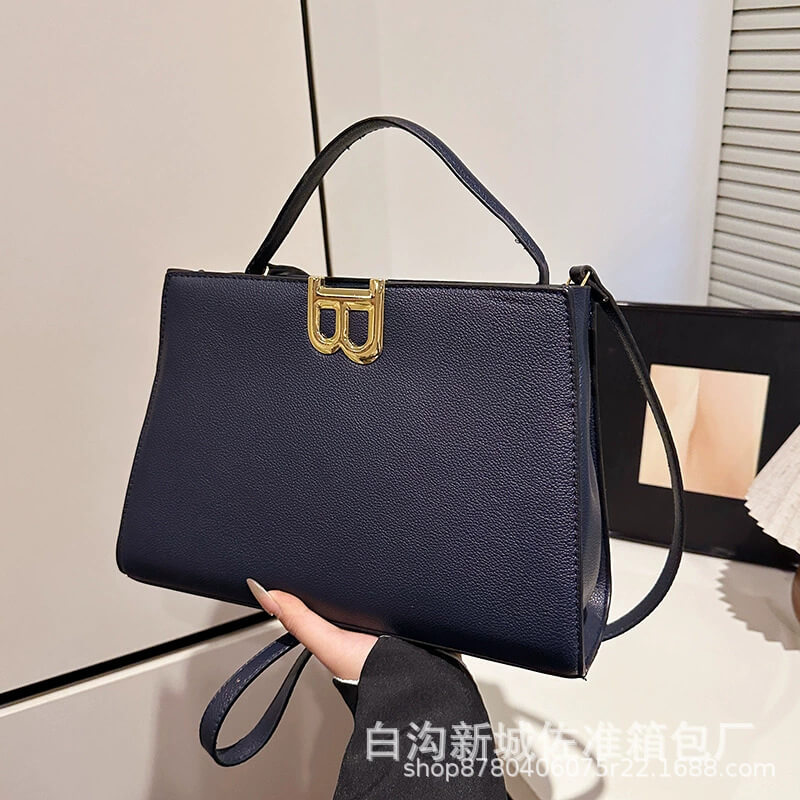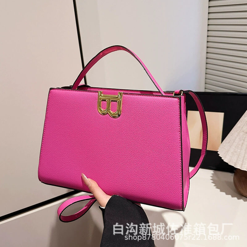 B logo handbag delivers bold minimalism with gold B-lock hardware and pebbled faux leather—crafted for women who command quiet luxury.