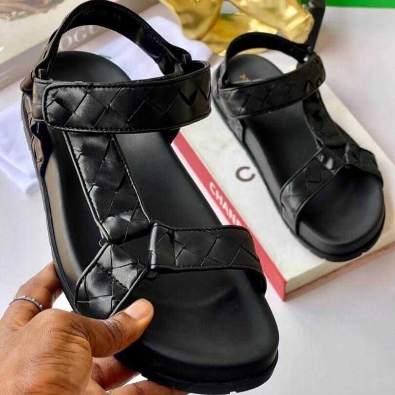 Bottega intrecciato sandals deliver iconic woven leather luxury with adjustable velcro straps perfect for owambe, casual flex, or summer drip.