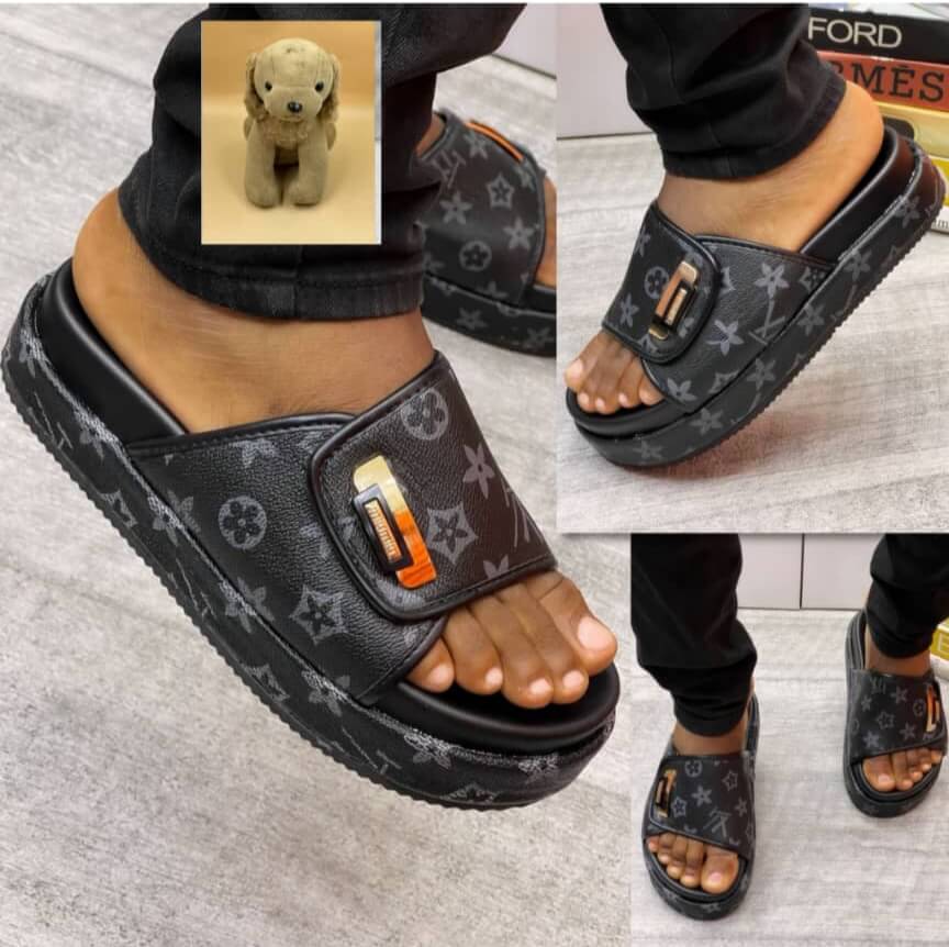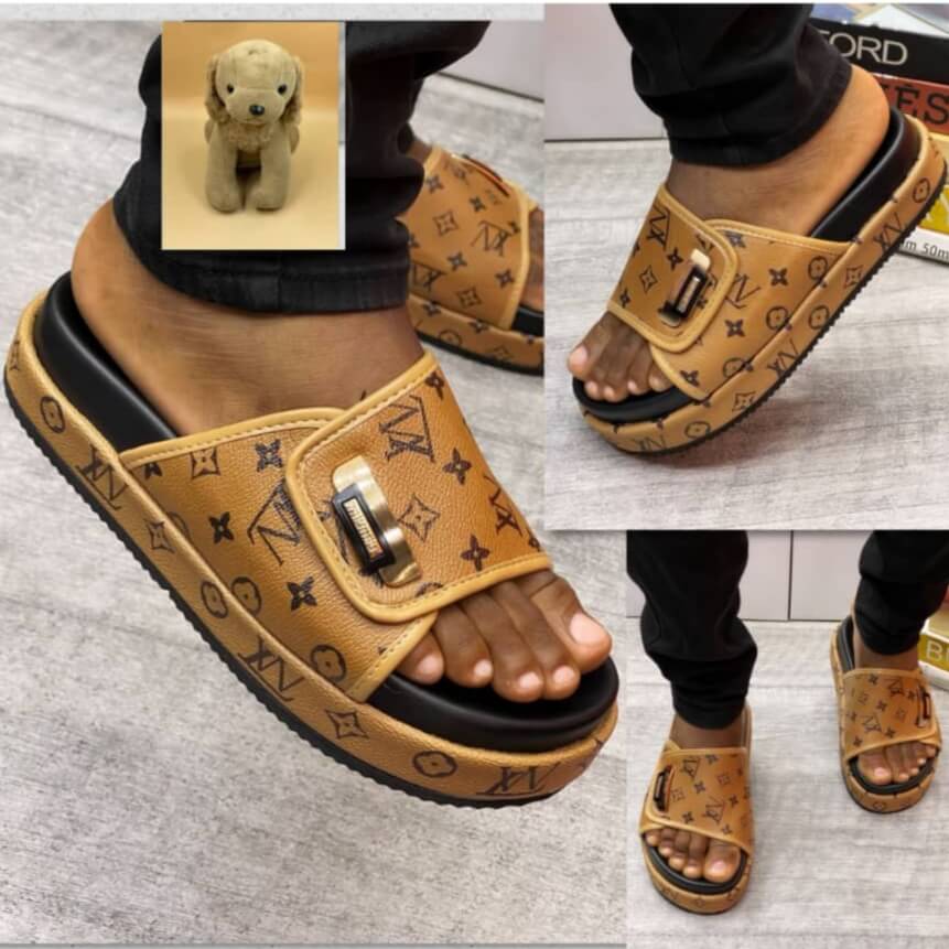 LV pam slippers deliver premium PU leather in iconic monogram print perfect for owambe, casual flex, or luxury lounging.