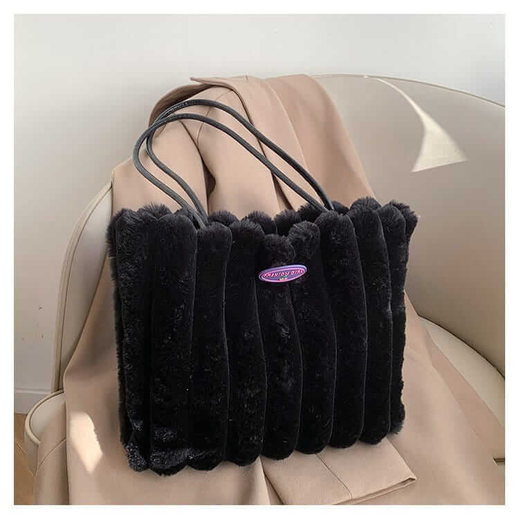 Grab this pink black faux fur tote—fresh, tagged, and ready for fast delivery.